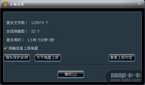 瑞星杀毒软件已经升级到最新版本了,并用之扫描了N多遍,扫描结果如下(第一次扫描时的结果,后来几次什么也没有了):