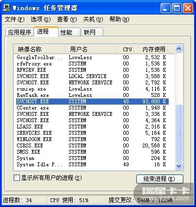 只是SVCHOST一项就占用了 CPU48%