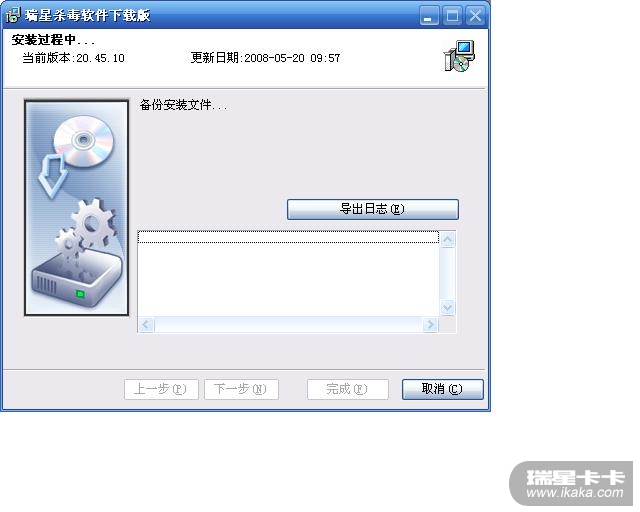 我用的下载的瑞星,安装的时候只有下一步,没有提示安装的位置,直接装盗C盘了 ,在最后一直是(就是最后一个图) 备份安装文件,,完成不了..我把整个安装过程都截图了, 安装之前我把其他杀毒软件卸载了.而且重启了.. 请高手指教 ,谢谢!!