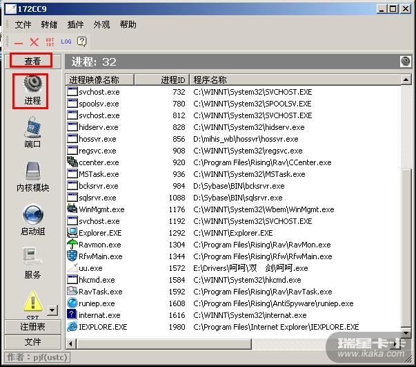 以及冰刃的进程中是否有不明程序。
