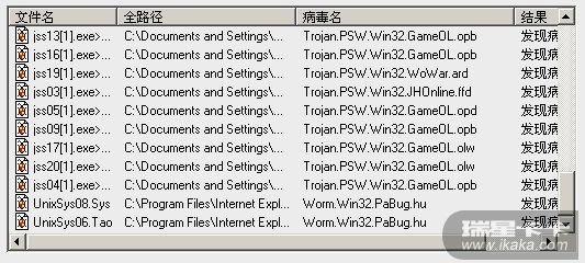 今天刚才又出现同样的情况,瑞星被毒再一次给杀了。 没办法,我用瑞星在线免费查毒的,进行了全盘查毒。查到一堆毒。 (我是个电脑盲,感觉这些就是木马一类的,不知道这毒到底有多厉害,电脑里面存放了一些游戏的账号和密码。也不知玩完了没有。)