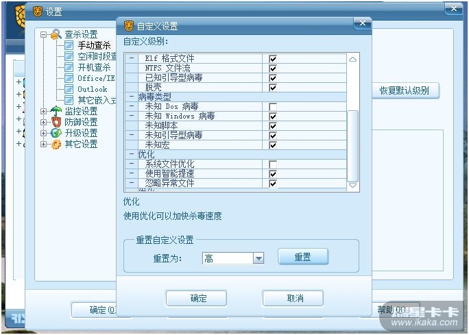 出现问题前的操作步骤:查杀设置中自定义级别设置刚打开一般正常偶尔会出现多余并无法完全显示