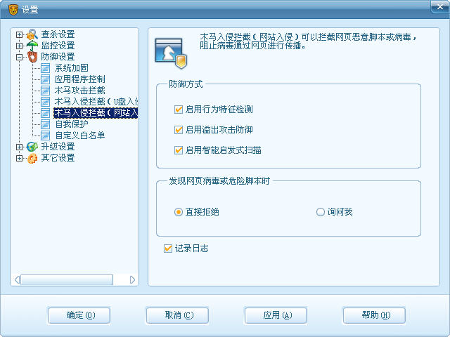 在“木马攻击拦截”这里看到了很新奇的概念,通过病毒