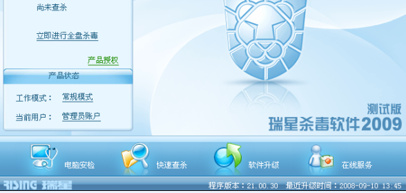 升级完成后再重新打开主程序。界面上显示:程序版本21.00.30.最近升级时间为。2008.9.10..13.45分