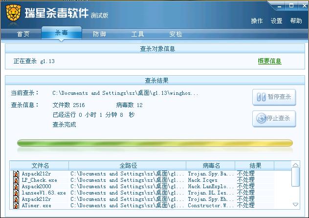 瑞星2009版查杀引擎测试