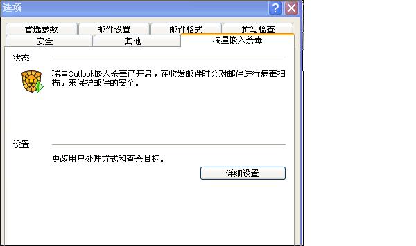 2)支持outlook 收发邮件扫描病毒,且在outlook中加载了瑞星