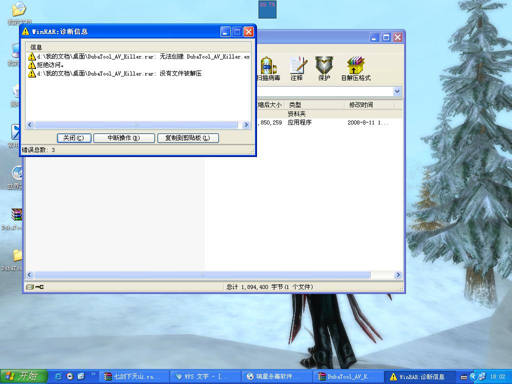 试图将专杀文件解压,提示无法创建,怀疑瑞星阻止其创建!!!!!