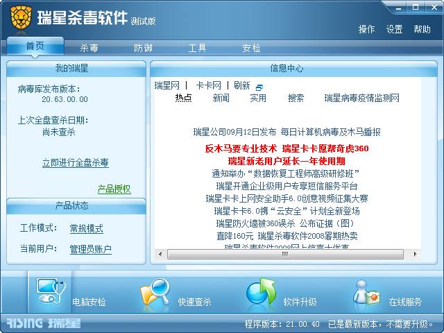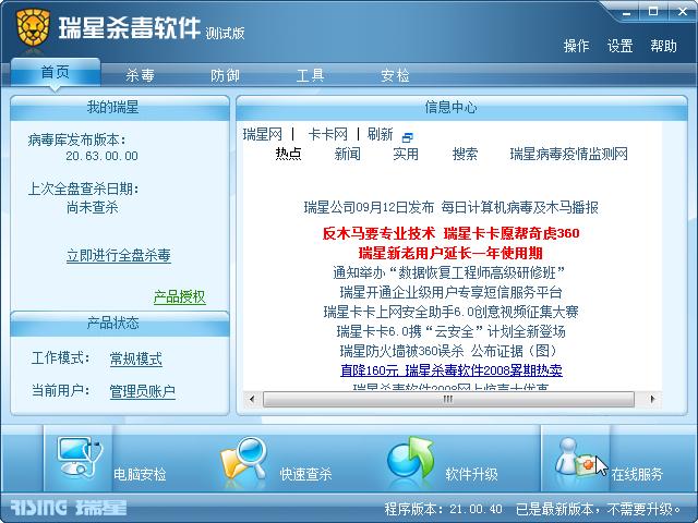 瑞星杀毒软件2009公测