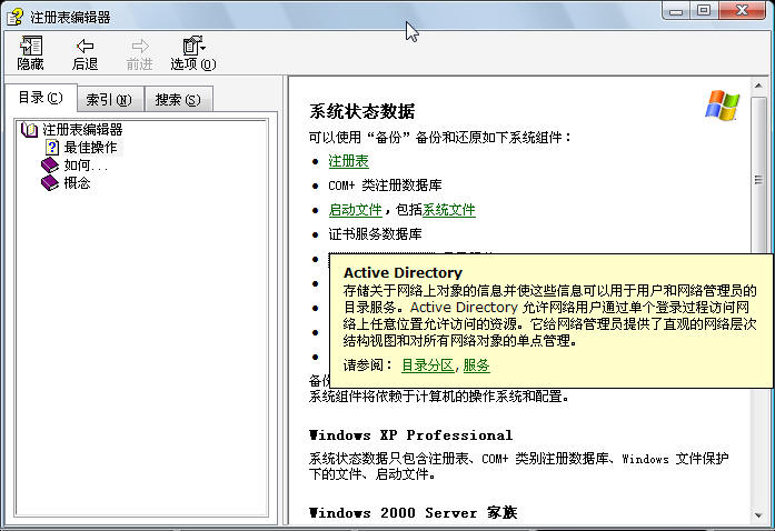 请参阅: [url=ms-its:h:\windows\help\ntbackup.chm::/HELP=glossary.hlp TOPIC=gls_directoryservice]目录分区[/url], [url=ms-its:h:\windows\help\ntbackup.chm::/HELP=glossary.hlp TOPIC=gls_service]服务[/url]