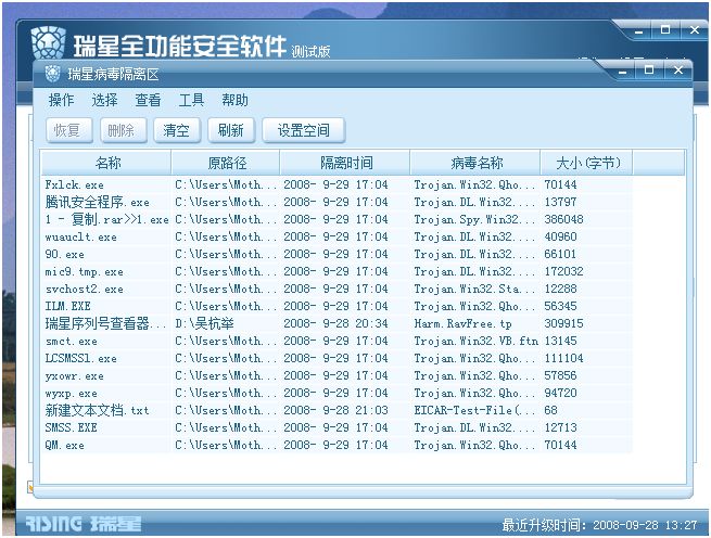 瑞星2009测试版问题反馈