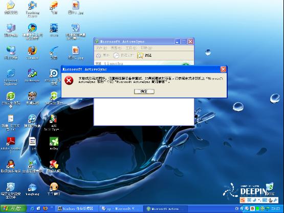 出现问题前的操作步骤:Microsoft ActiveSync自动加载后接上wm5系统的手机,弹出警告。