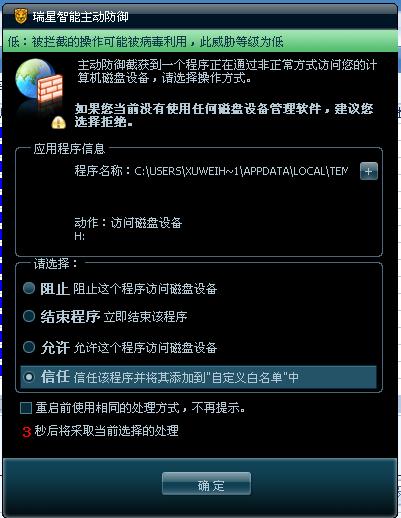 我插了U盘主动防御老是提示这个东西。。点击阻止也没有用。。信任也也没有用。。。我晕了。。拔了U盘就没事。。
