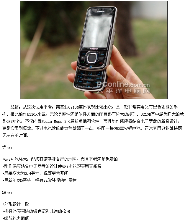 回复:『手机评测帖090』Nokia 6210 Navigator