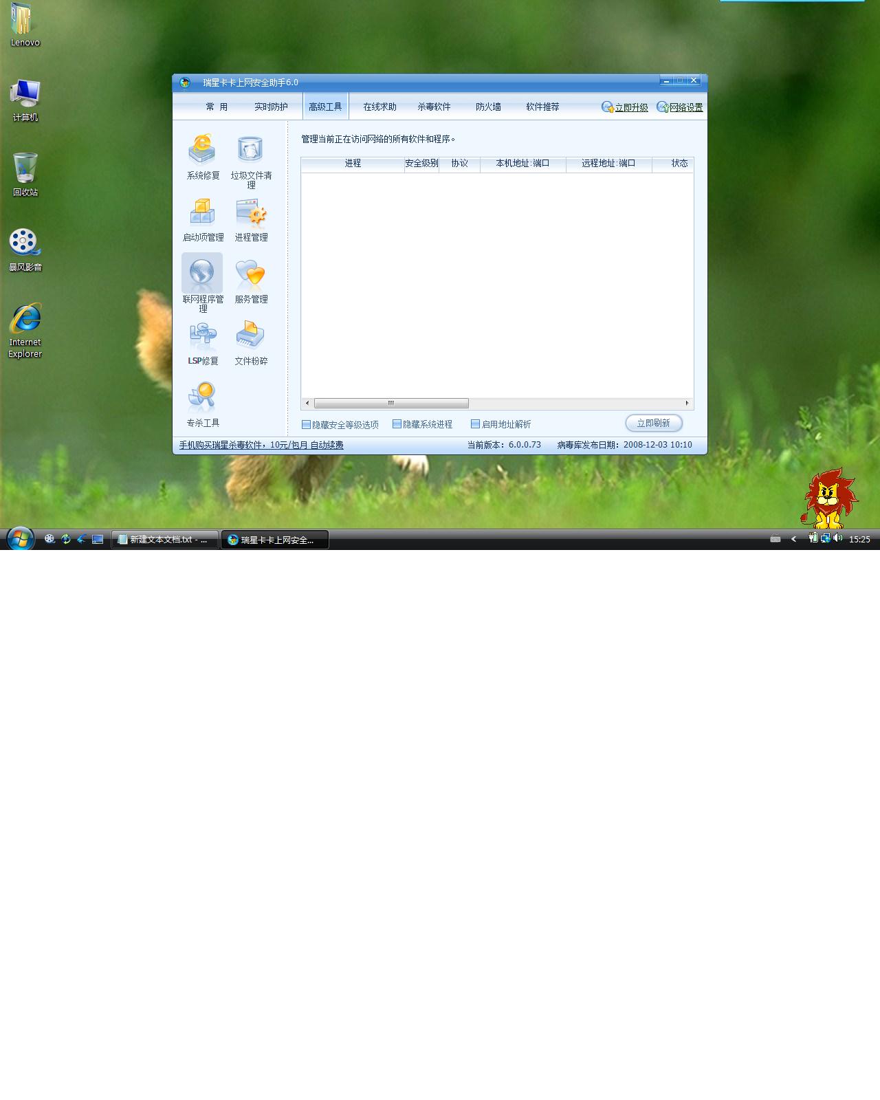 :发现其的联网程序管理在vista下看不到任何进程(即使将安全进程 系统进程全部显示)请改进。如图联网程序管理.jpg