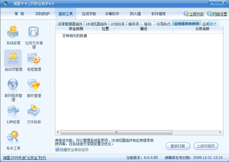 1.是不是2009杀毒软件和防火墙不能同时安装呢?我装了一次,重启之后就蓝屏了,分开装就很好。