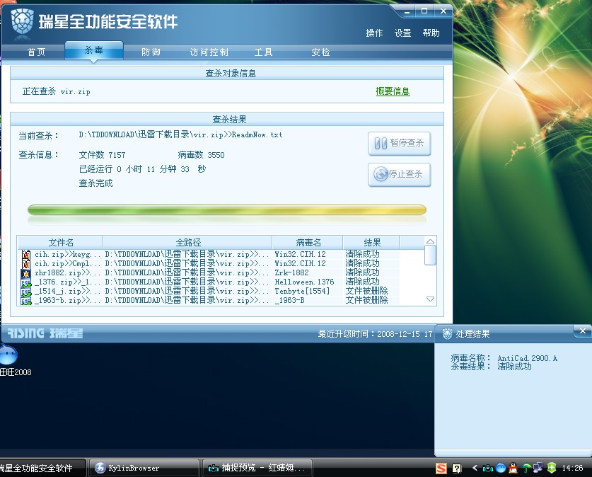 测试卡巴全能与瑞星全能杀毒对比!