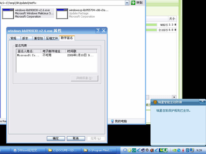 如图是KB890830运行瑞星就使其不能进行补丁了,微软的网站说KB890830是有数字签名的,希望工程师尽快解决。
