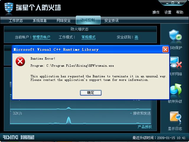 建议楼主卸载瑞星,同时删除瑞星安装目录后,从瑞星网站下载新版本安装包,重新安装09版,应该是可以解决的。