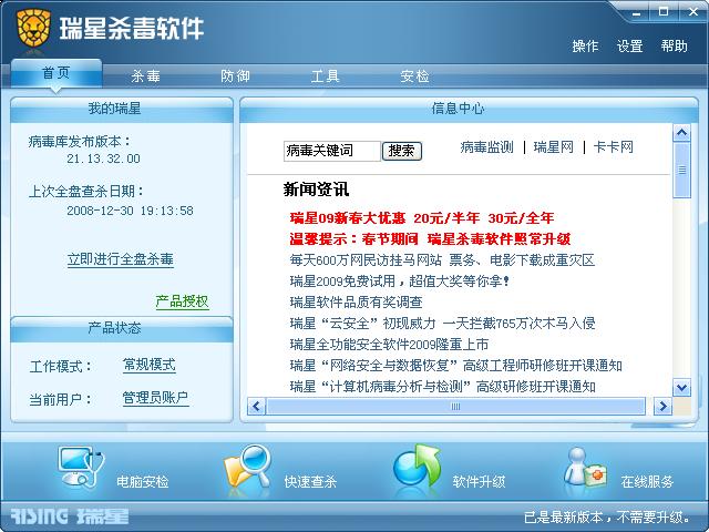 瑞星杀毒软件2009公测