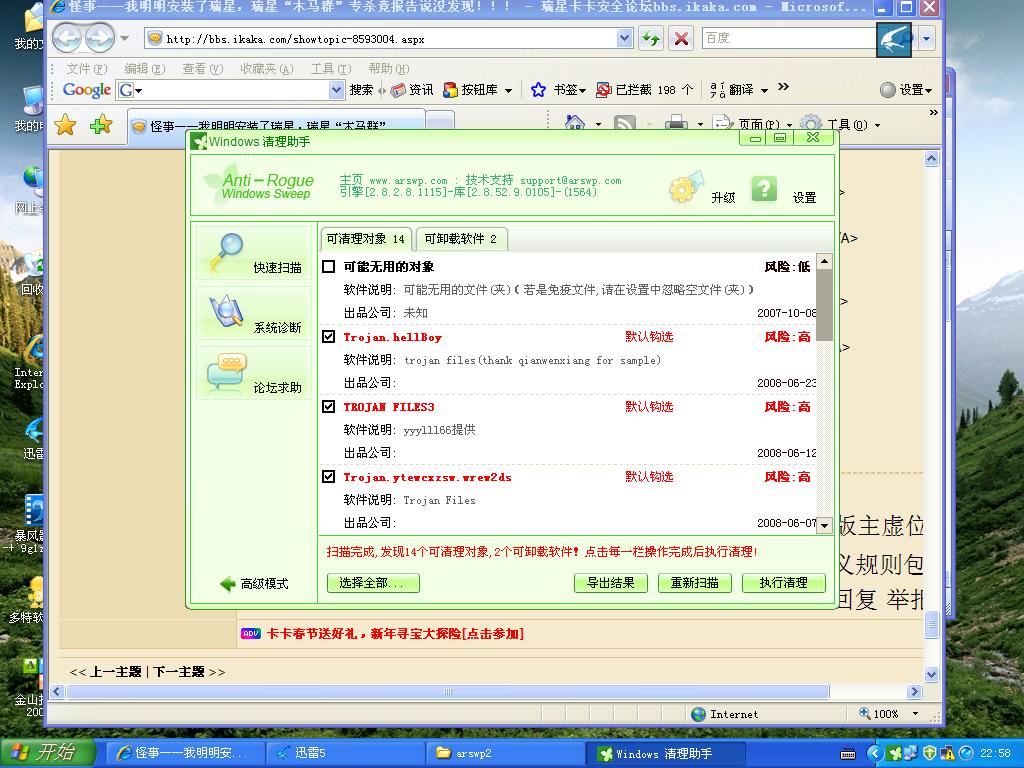 怪事——我明明安装了瑞星,瑞星“木马群”专杀竟报告说没发现!!!