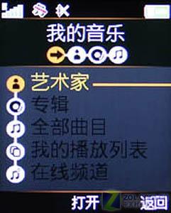 作为中端手机,这款索尼爱立信W395c上内置了Walkman 2.0音乐播放器,虽说没有3.0的功能丰富,但是对于音乐播放上的设定还是一点没有被减弱。进入音乐播放器的标签页面上,虽说项目不是很多,但是也可以帮助我们更快找到相应的歌曲。播放器依旧是我们熟悉的界面,同时三种配色风格可以供我们选择。