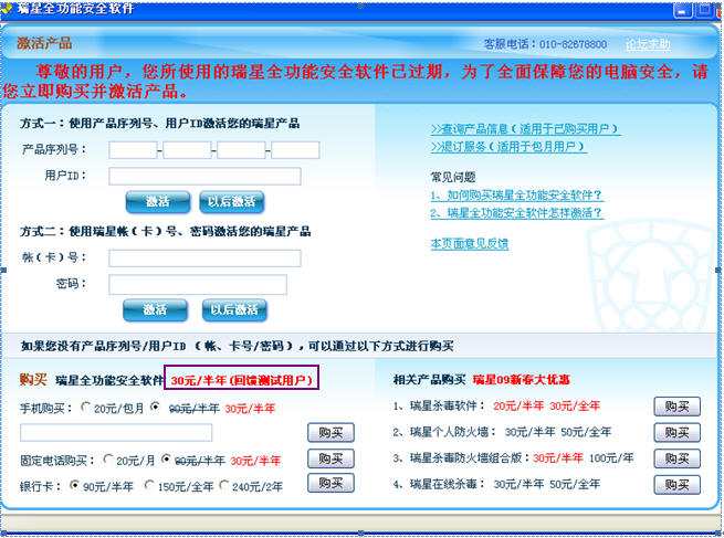 [求助] 关于购买瑞星全功能安全软件的疑问