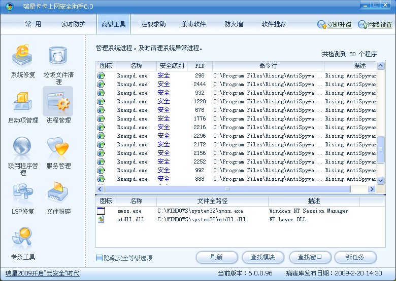 回复:再一次求助:电脑上网后经常出现许多重复的进程Rsaupd.exe,PF使用率也变大