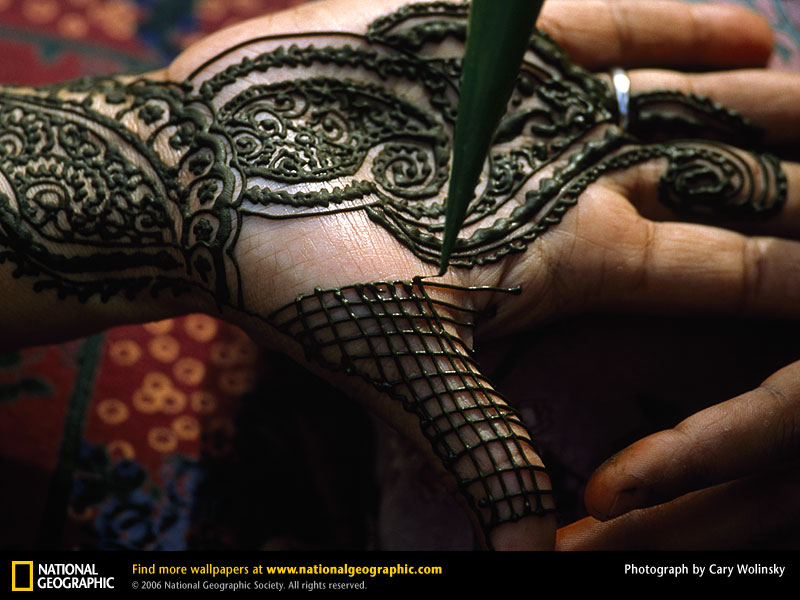 一位妇女申请应用一种精巧的格子关于指甲花染料的粘贴到神父的手