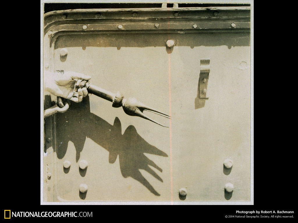 祭祀餐中侍者用这把人肉叉(斐济语iculanibokola)侍奉个别神圣到不能碰食物的人物进餐。19世纪末,随着基督教影响的传播,食人的传统在斐济结束了,但西方对于这一恐怖习俗的迷恋还在继续。1880年代后期,受游客需求的刺激,贩卖仿制的食人叉的买卖勃然兴起,至今方兴未艾。根据我们的记录,无法判断这张the Society(译者注:一家豪华旅游公司)于1917年获得的照片所拍摄的食人叉的真假。