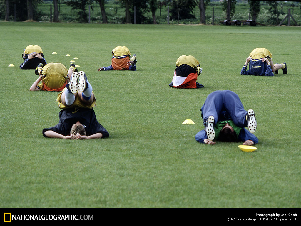 作为英格兰超级联赛联盟的一员,切尔西队的队员们在训练期间正在做伸展运动。在英国,足球可以追溯到八世纪,在当时足球还是一项充斥暴力的运动,在场上咬人﹑挖眼睛﹑殴打都并不希罕。