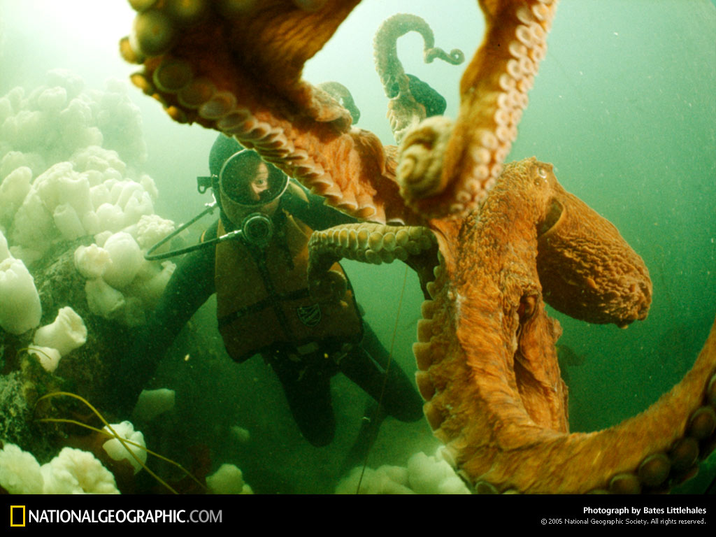 能见识到海水深处壮美景色幸运儿不多,但这位在华盛顿普吉海峡为巨型太平洋章鱼作标签的生物学家就是其中之一