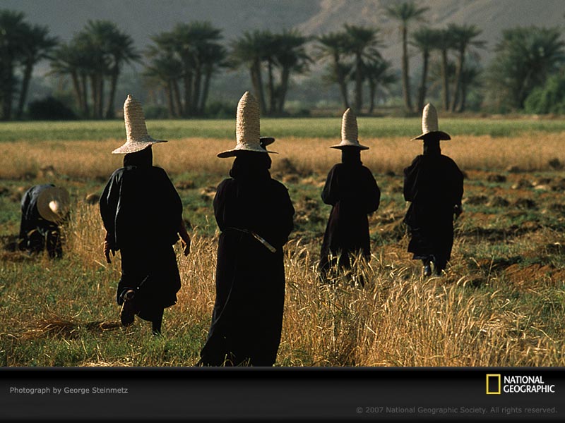 穿着黑色衣服和预防太阳晒的稻草帽子叫做(nakhis),那是也门的妇女在原野劳动,一个沙漠中的绿洲是在阿拉伯半岛的南部。占据了第五大的阿拉伯半岛,(Rub al Khali)是世界最大的沙海。它有582747平方公里,沙特阿拉伯人们坚定要求对阿拉伯半岛合理分配给阿曼、也门、阿拉伯联合酋长国。大约有十二个贝多因人部落仍就在这荒芜的地域。