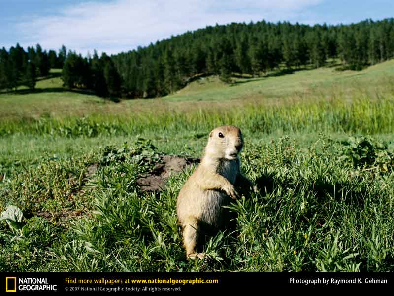 位于南达科他地域有一只黑尾草原狗昂首站在它的洞穴之外。这些十分有趣的啮齿动物生活是有很好组织的地下洞穴并且叫洞穴为镇,它们可以发展为数千只之多。