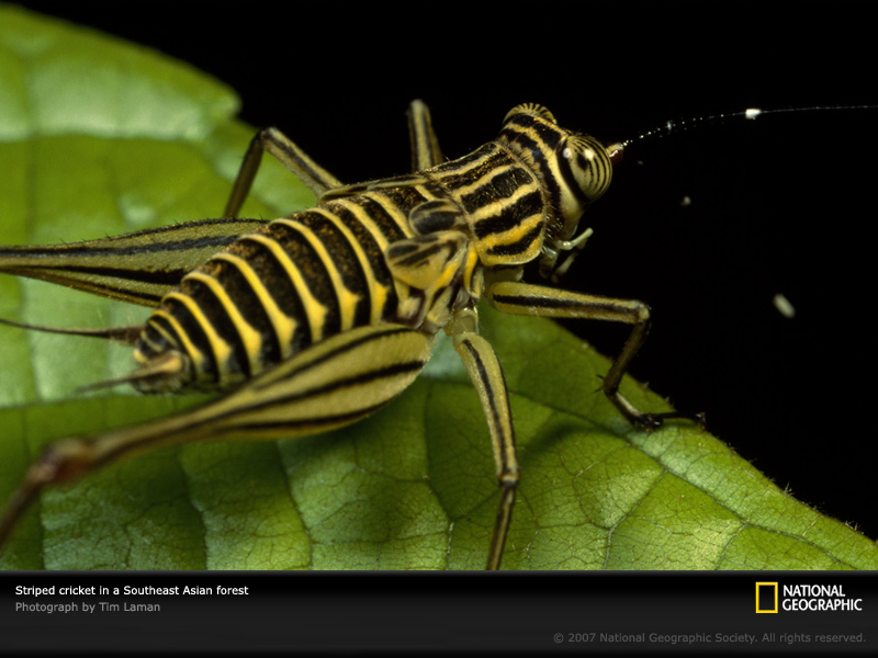位于东南亚的森林夜间星空的斑纹下拍摄了一只蟋蟀。在丛林里遍及全世界,每逢落日之后都会看见动物开始活跃起来,跳跃,和发出嗡嗡声来自森林中的动物。