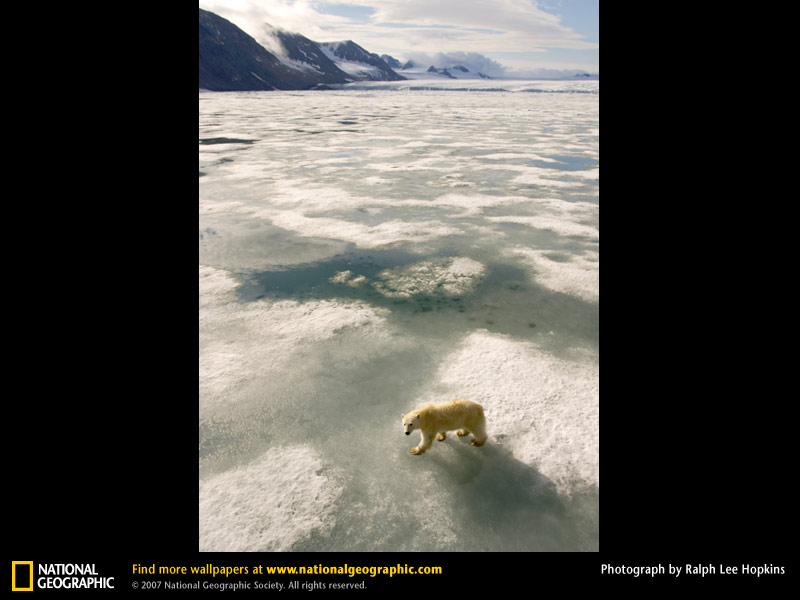 当北极圈的冰融化的时候,北极熊离开苔原并冒险到结冰的海洋之上,其目的是搜索海豹及其它的被掠食者。北极熊有锐利的爪和毛皮在脚的末端有利于在光滑的冰面行走。