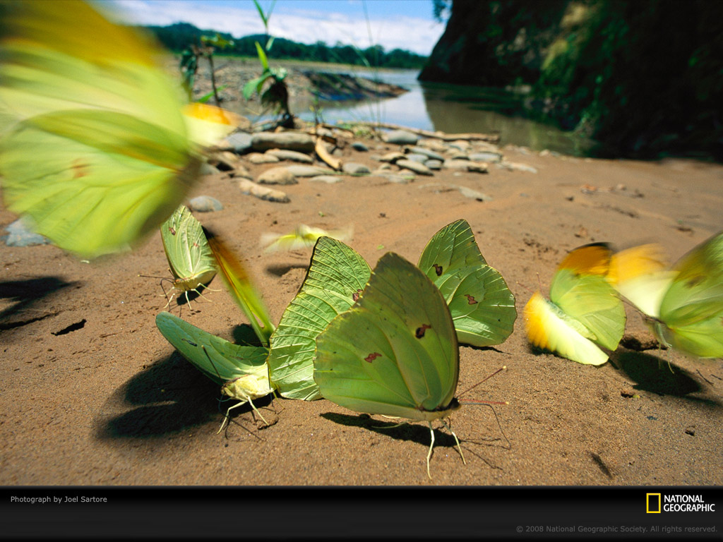 叶绿色pierid 蝴蝶落在沙质海岸的Tuichi河