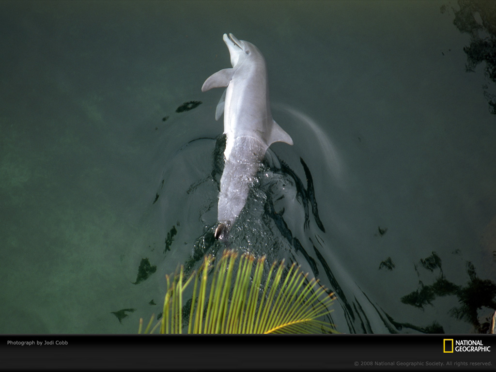 一只宽吻海豚游玩在夏威夷的纳洛的一个泻湖