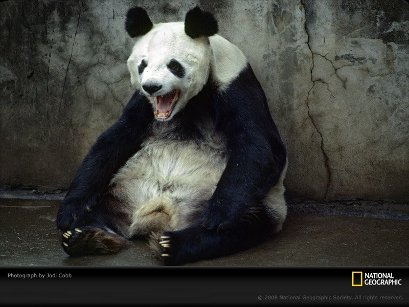 一只大熊猫打呵欠在它的围墙在Yuantong动物园位于昆明,中国。野生熊猫生活仅仅在偏远的,中国中心的多山地域。这些高的竹林(它们的最主要食物)是凉的和湿的—正因为熊猫喜欢它。