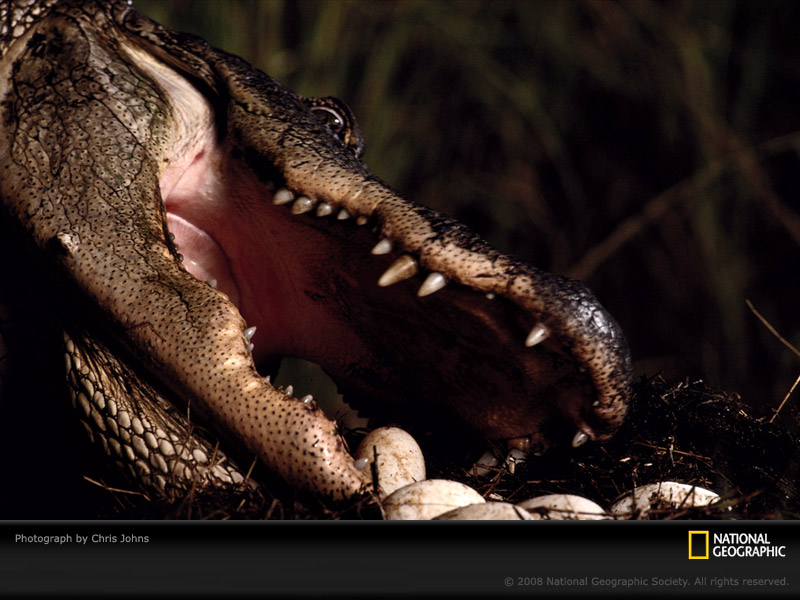美洲鳄鱼调整它的卵群,沼泽地,佛罗里达州