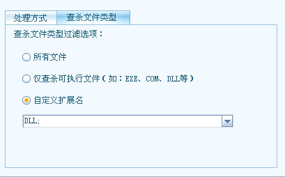 额 根本 没有只查杀dll文件这一项 DLL sys exe 都是PE文件 不会被分开查杀的