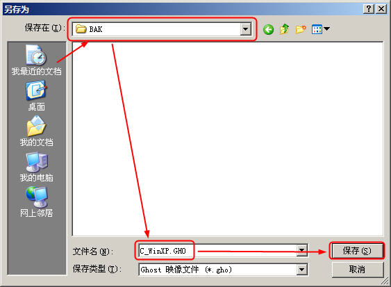 2、选择要将备份好的文件存在在哪里,输入文件名,并点击“保存”;