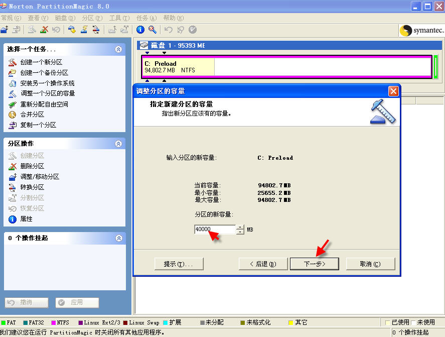 我直接调整了C分区大小,然后重启应用,他开始工作到最后时