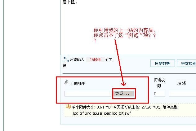 谢谢大哥了,不是我不上传附件,而是上午根本就只有上传附件那4个字,下面那个条条都没有点哪都没反应,中午我用你给我的那几个东西胡乱搞了下,然后又粉碎了几个东西,这会好象好了,起码不报警了,还是谢谢你~~~~