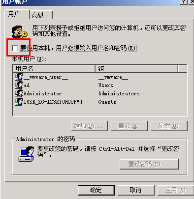 选中要自动登录的用户名,再把红框处的勾取消,确定!重启就知道效果了!
