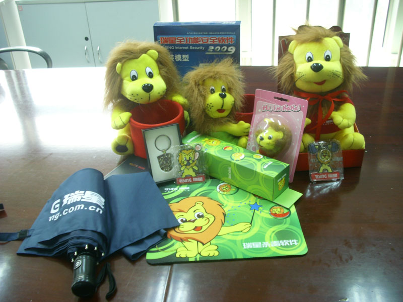 瑞星钥匙扣,瑞星卡卡公仔钥匙扣,瑞星卡卡钥匙扣,瑞星小公仔,瑞星鼠标垫,雨伞,音乐公仔,瑞星卡卡笔筒(大),卡卡笔筒(小),等。