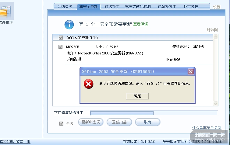 卡卡安全助手漏洞补丁打不上的请跟贴