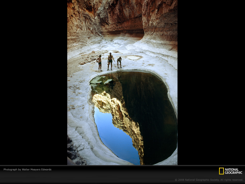 远离科罗拉多河咆哮声的喧嚣,得享一池宁静。在亚利桑那州大理石峡谷的Shinumo干河床发现这个肃静的石灰岩圣地后,国家地理协会探险队的成员为其取名为银岩洞。
