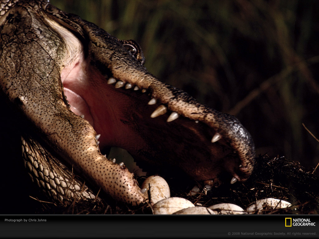 尽管长着70颗古怪的牙齿和一张恶名昭彰的丑陋大嘴,这条生活在佛罗里达大沼泽国家公园的雌性美洲短吻鳄在她的蛋孵化前夕对蛋的触碰却是如此轻巧细腻。她将蛋轻柔地含在嘴里,在舌头上慢慢翻滚,感受生命的迹象。如果感觉到动静,她就会把蛋壳弄开,然后头向前倾让鳄鱼宝宝爬出来。