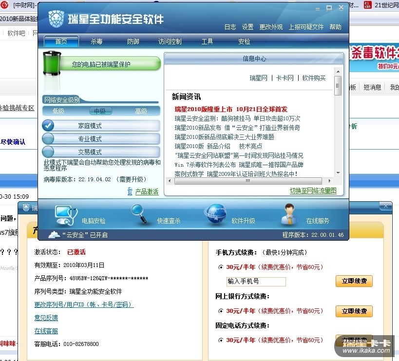 强烈要求瑞星2010全功能软件解决windows7系统下IE8假死机问题。
