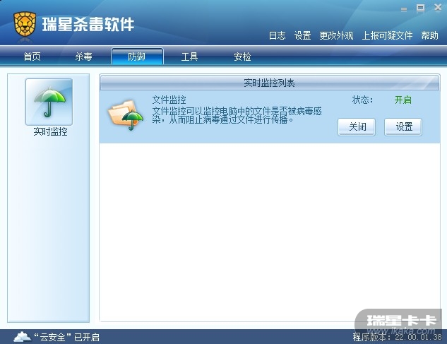 瑞星主界面 防御选项卡